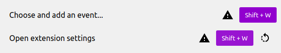 You can't use a key combination that is already utilized by another command. A exclamation mark will be displayed against the conflicting combinations.