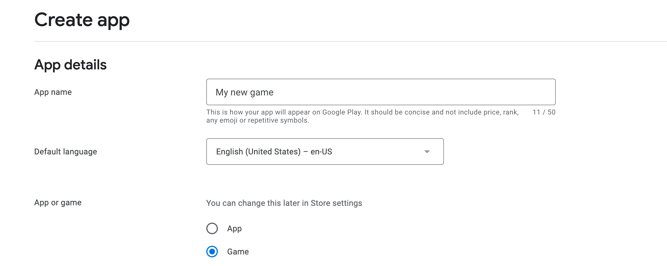 Later, if you want to publish an upload, be sure to increase the version number (in the game properties in GDevelop). Otherwise, the Play Store will reject the new Android App Bundle if it has the same version number as an existing one.