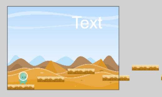 Notice how I made separate text objects for separate texts. But we don't want our game to show the Game Over text at the beginning. The Game Over text should only be visible only at the Game Over state, that is when the value of the state variable is 2. Similarly, we want the Press Enter to Restart text to appear at this stage too while the other texts should be hidden. At stage 0, the Press Up to Enter text should be visible. While the player is in motion, we want to hide the texts. For this, we need to act on the visibility of these text objects.