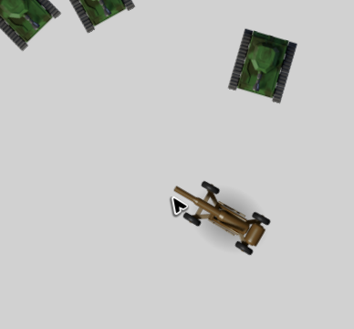 This action will create a "turret" in the scene. The "turret" can then be selected, moved around and rotated.